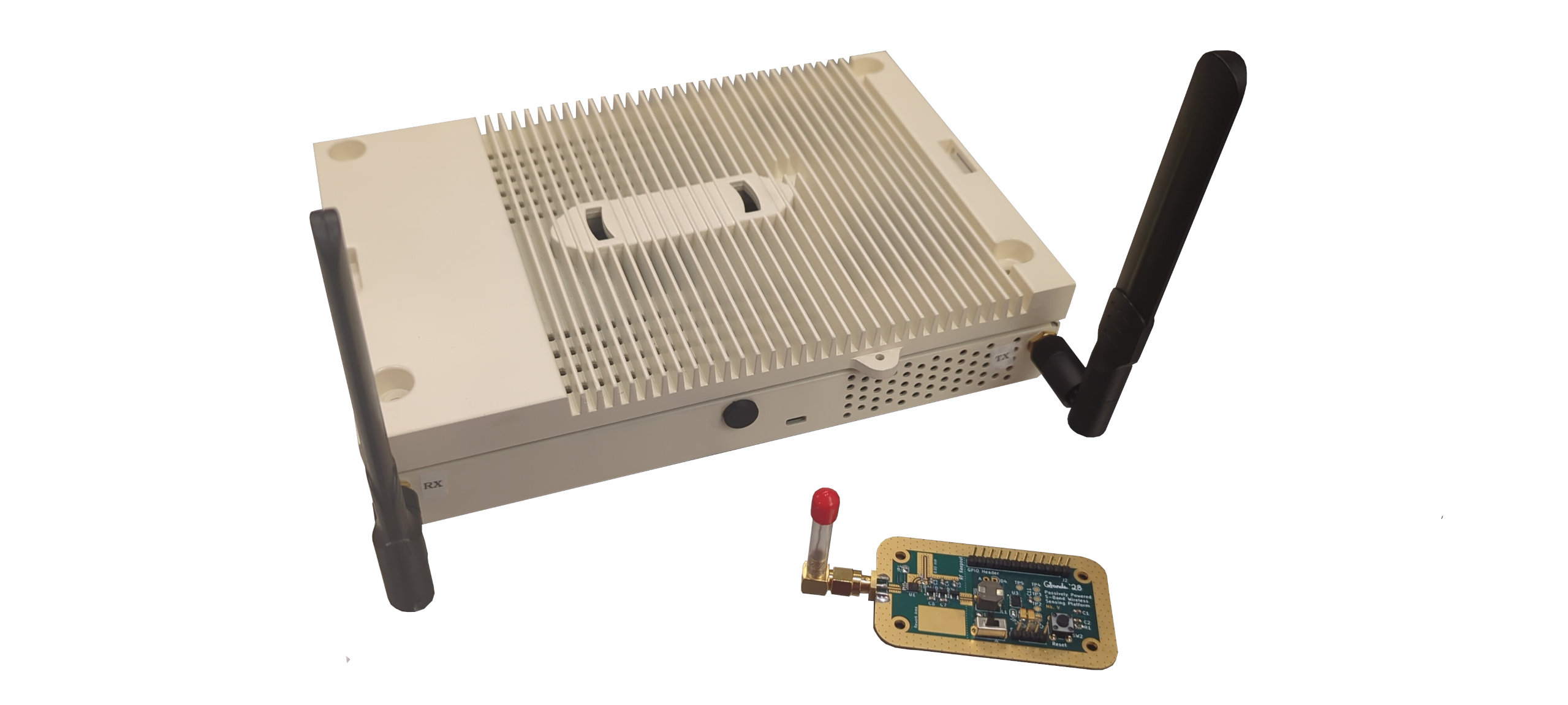 I am currently developing an extremely low power wireless sensing platform that run off of scavenged RF power. The current version of the sensor is able to continuously run off of less than a tenth of a milliwatt of power at 3.3 GHz. It relays data it gathers from an enviornmental sensor by backscattering (reflecting or harvesting) the signal that energizes it.